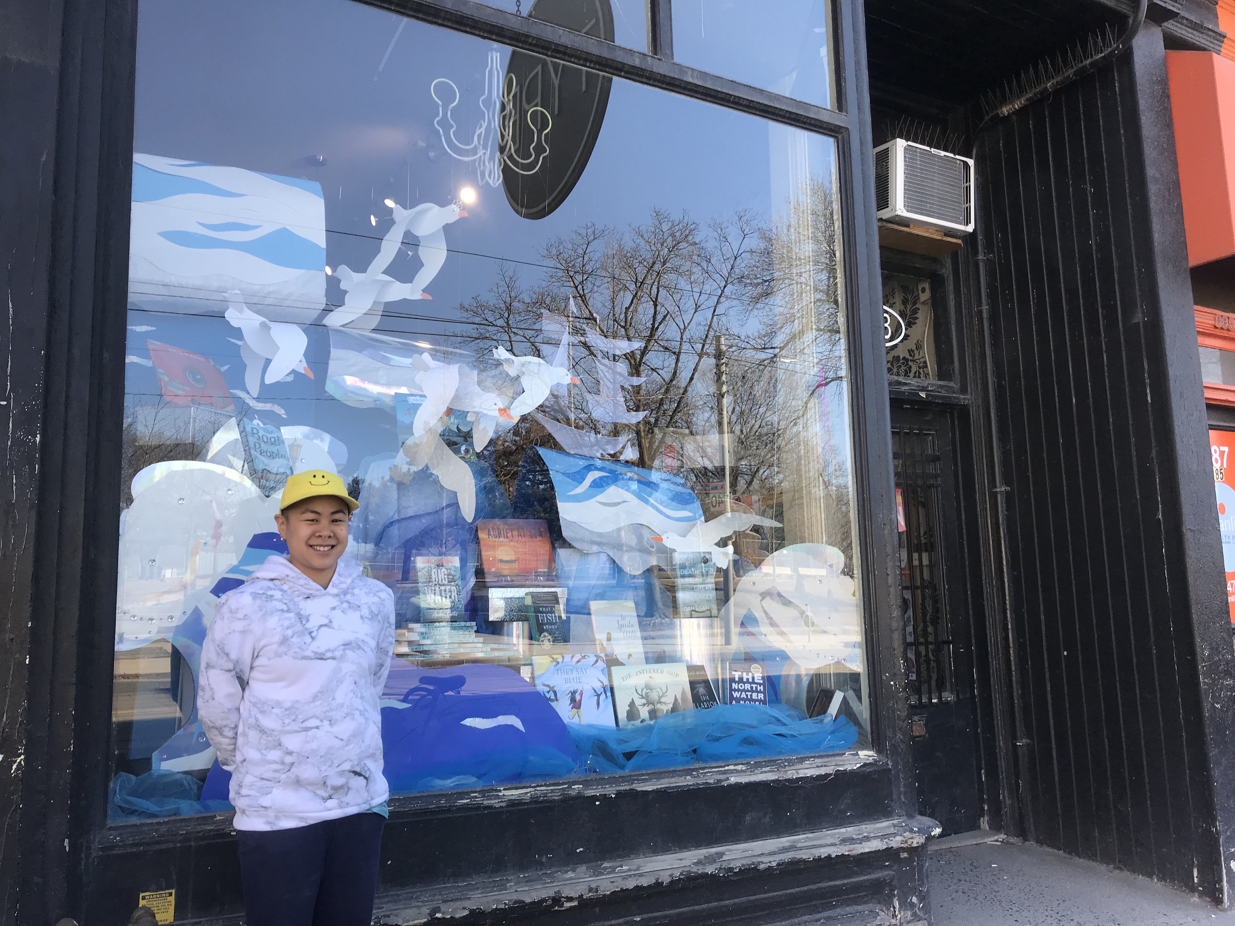 PUFF Paddy was commissioned to create a window display for TYPE Books to feature their latest collections of books. Drawing inspiration from the book called Big Water by Andrea Curtis. Paddy created big waves and arranged them in different heights with a seagull mobile and kite sail ship by Haptic Lab.