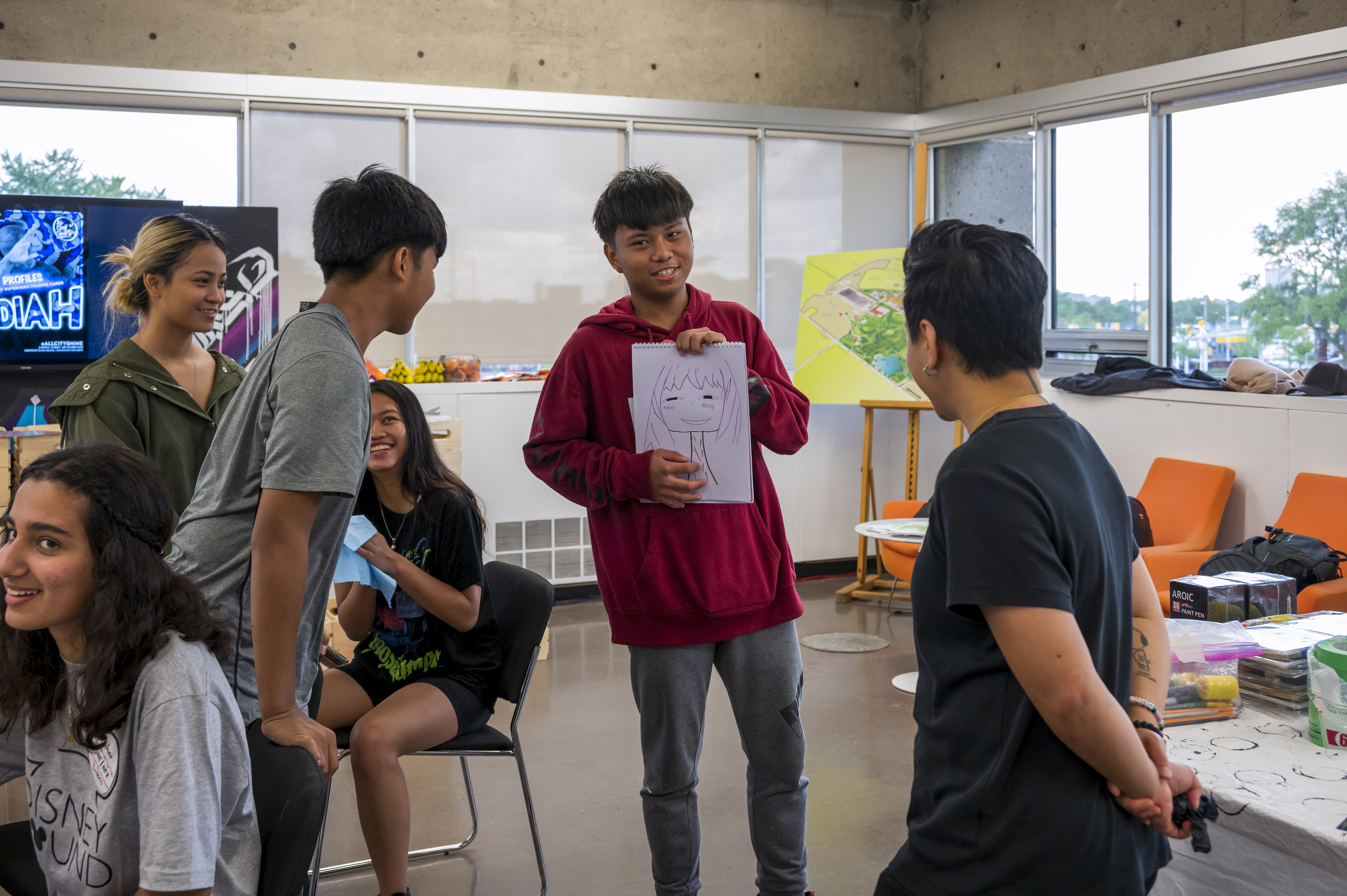 As part of North York Arts' response to the Truth and Reconciliation Calls to Action, Paddy Leung co-facilitated accessible mixed-media workshops for youth ages 14-18 at Downsview Park. The workshops invited young people to explore their relationship to the land and deepen their understanding of solidarity with Indigenous peoples and cultures.