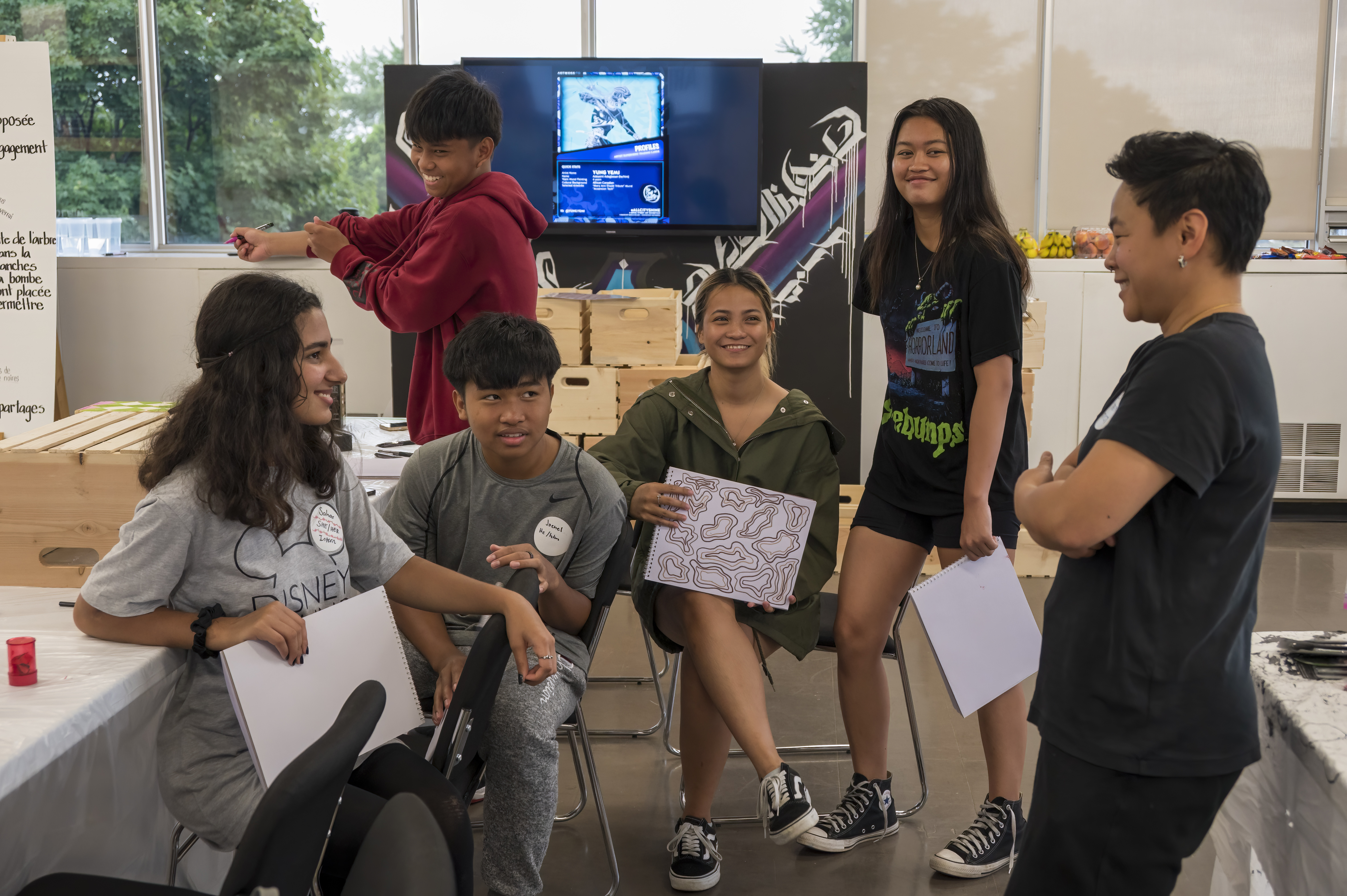 I create participatory art projects and learning experiences that centre care, equity, and collective storytelling. My practice brings together art, education, and community engagement to support 2SLGBTQIA+ communities, racialized youth, and intergenerational connections.