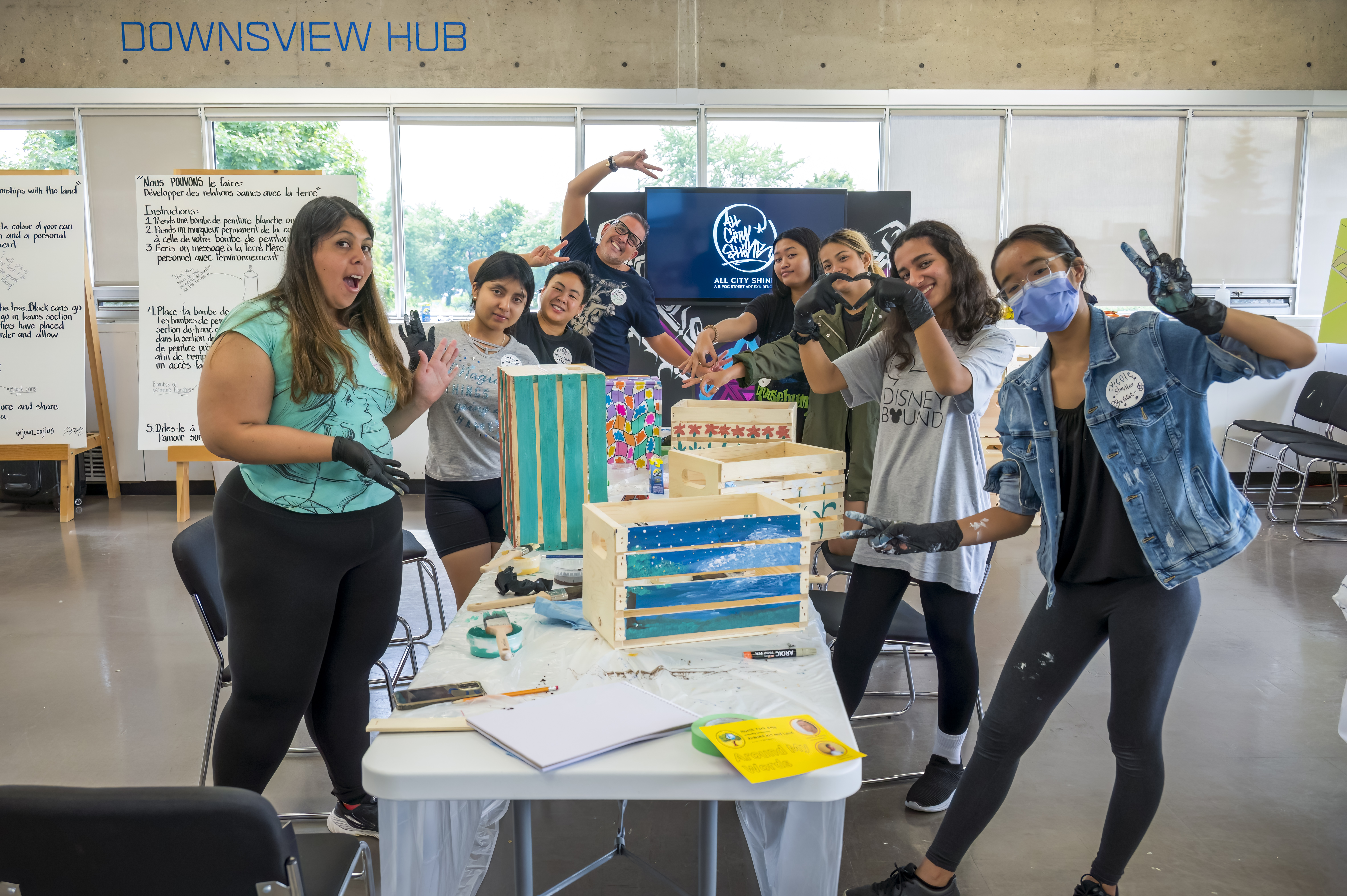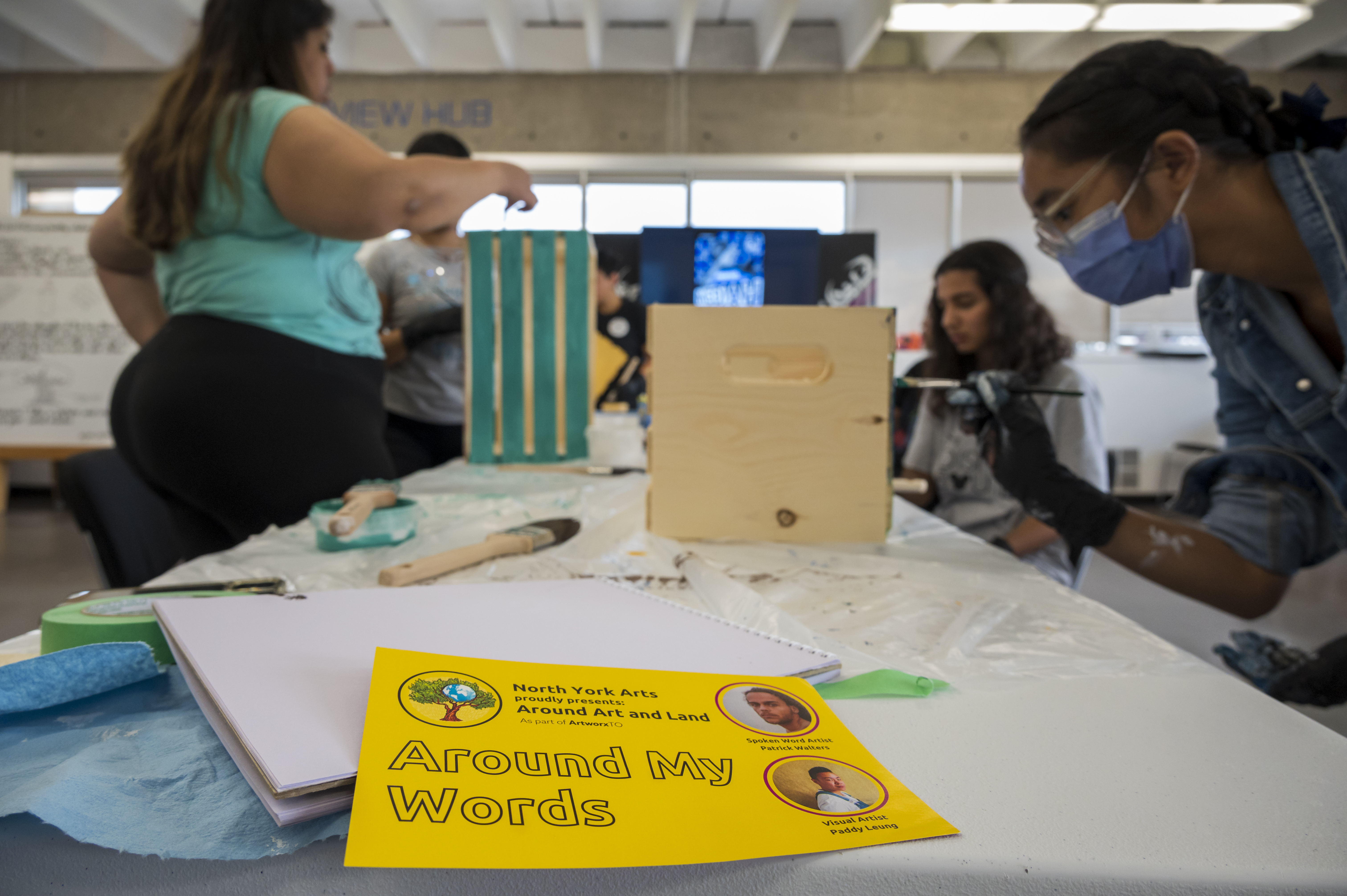 Participants first worked with spoken word poet Patrick Walters to create poems centered on nature and their commitment to the land. They then collaborated with visual artist Paddy Leung to embed these poems into wooden crates through painting and mixed media techniques. Youth reflected on what it means to be close to nature, their shared responsibility to Indigenous communities, and their role in environmental stewardship.