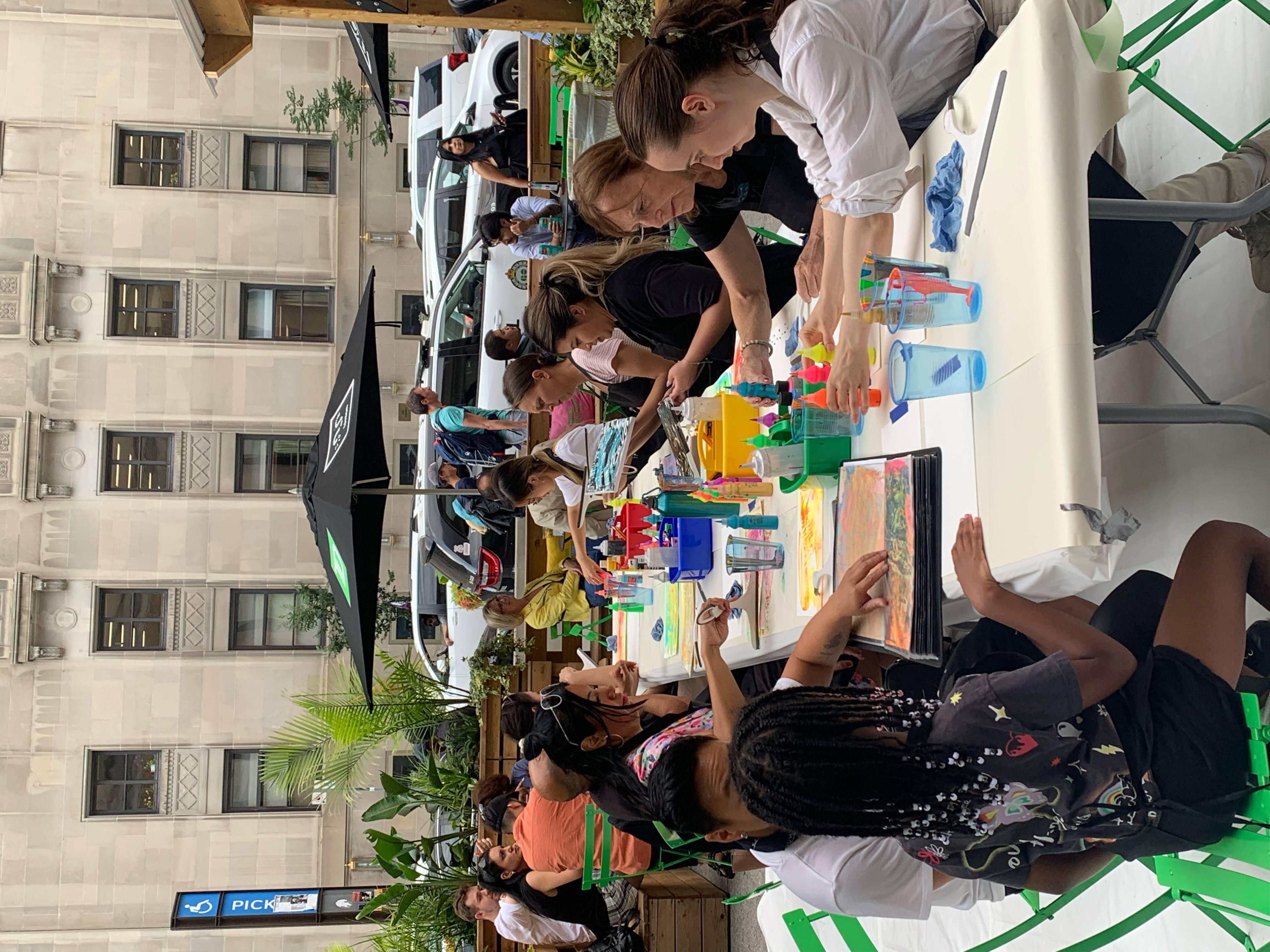 Union | Squeeze Painting took place on Wednesday, July 10, 2023, and Wednesday, August 23, 2023, from 5:00–8:00 PM, at Union Station in downtown Toronto. The project highlighted the power of accessible, low-barrier art-making to activate public space and foster moments of connection, play, and shared joy.