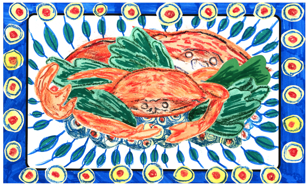 A tender depiction of a chilled crab platter inspired by the summer meals Leung’s mother prepared, evoking memories of long, warm days spent sharing food with friends and family, and reflecting care, generosity, and the joy of gathering around a table together.