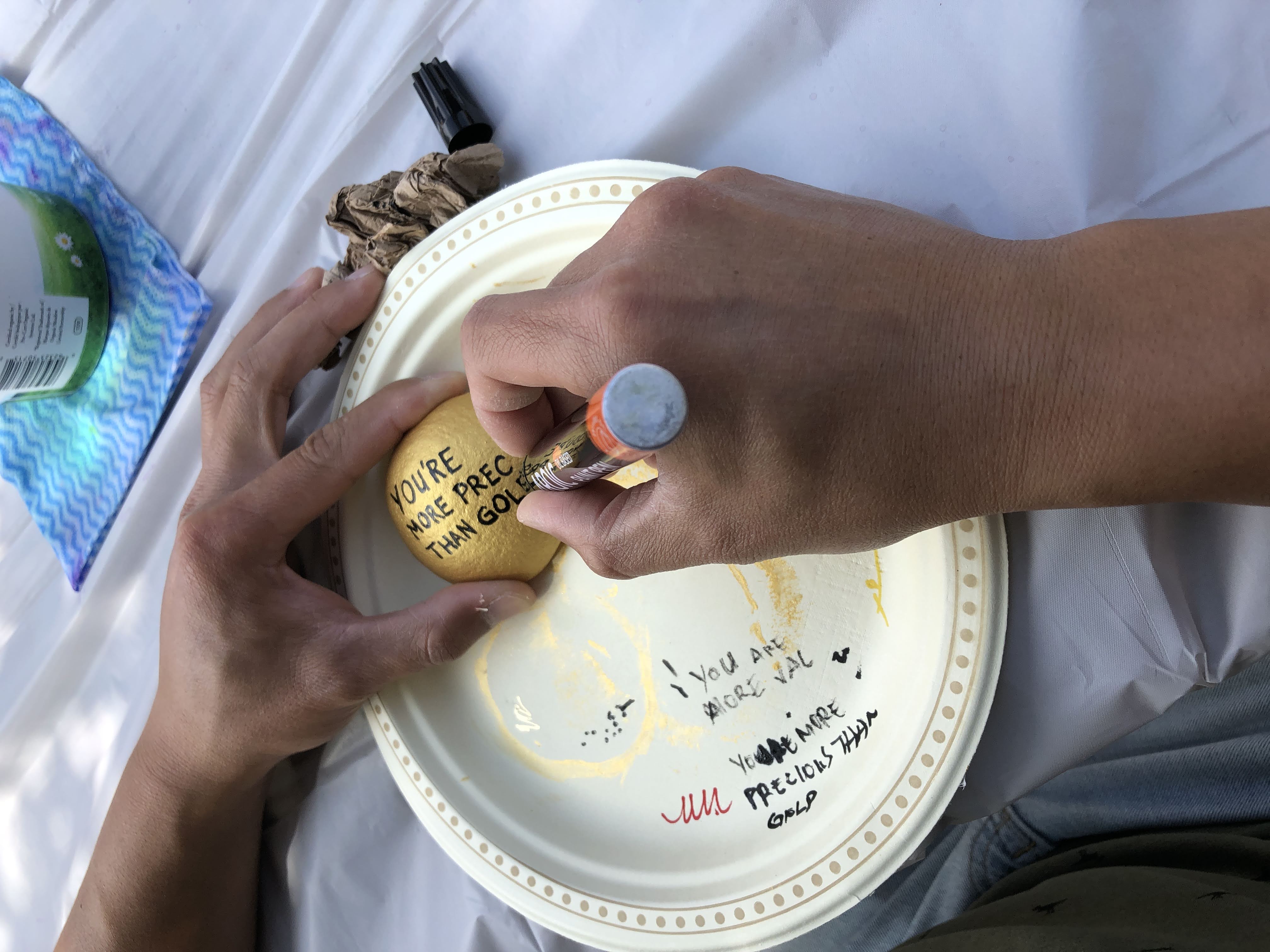 The project was intentionally designed as a hybrid experience to support those unable to participate in person. Virtual workshops were offered alongside the public installation, with accessibility and safety prioritized throughout, including the invitation of an ASL interpreter for online sessions. Through playful participation and shared care, Kindness Rocks demonstrated how public art can create inclusive, affirming spaces that support both individual expression and collective belonging.